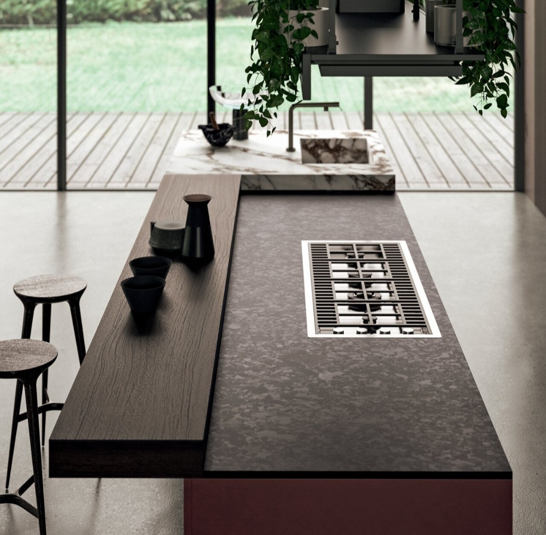 CUISINE NOEA PROJET 5 ÎLOT CENTRAL 3-1 MARBRE & TITANIUM ESPACE CUISINE ESPACE EVIER 3E GÉNÉRATION ESPACE BAR ESPACE RANGEMENT …….. MEUBLE ÉLECTROMÉNAGER ENCASTRABLE RANGEMENT FOUR ET MICRO-ONDE DIVERS RANGEMENTS MATIÈRE : BOIS LAMINÉ